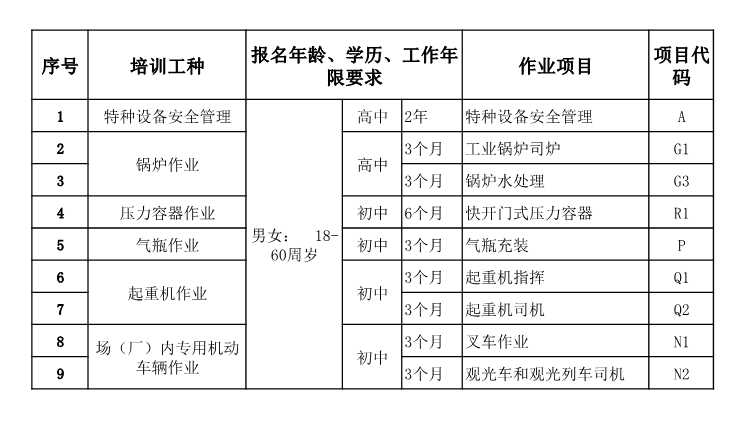 特种设备培训项目