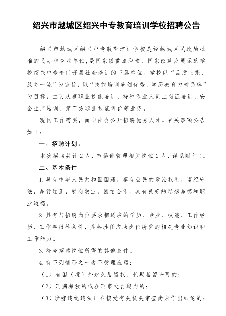 绍兴市越城区绍兴中专教育培训学校招聘公告10.31