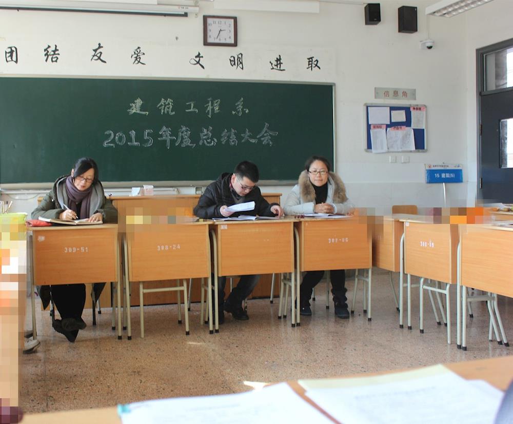 1月25号下午,建筑工程系在崇学楼308教室召开2015年度总结大会,本次会议由系主任冯晓君老师主持,建筑工程系全体教师参与了会议。