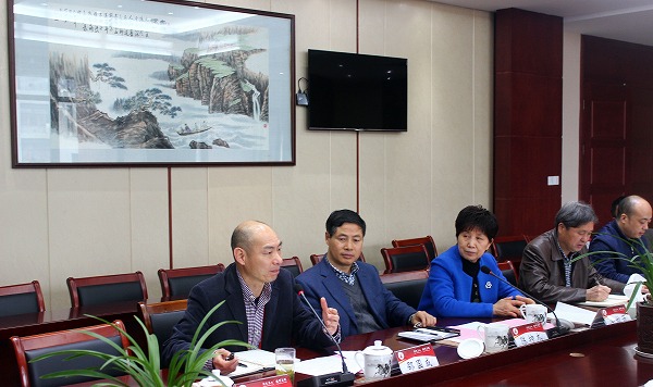 绍兴市人大教育科学文化卫生工作委员会主任陈坤木(左三)主持会议