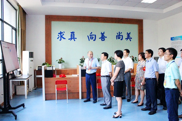 傅振邦书记一行首先参观了学校的“快乐大本营”学生社团活动中心,并认真听取了邵国成校长和学校团委书记沈蕾老师对学校的办学情况和校园文化、社团建设等方面工作的经验介绍。在学生服务中心,傅书记详细考察了学校志愿者规章制度以及志愿服务情况记录表,并对服务中心创新的设计理念和工作方法、干净整洁的环境布置以及细致周到的服务规范给予了赞赏和肯定;在“光影部落”摄影社、“兰亭雅集”茶艺社、“舌尖之上”美食社等学生社团,傅书记与活动师生展开了亲切地交流,他深入了解了同学们在社团活动过程中的心得和收获,同学们在活动过程中快乐、专注的神情和自信阳光的精神面貌给他留下了深刻的印象。