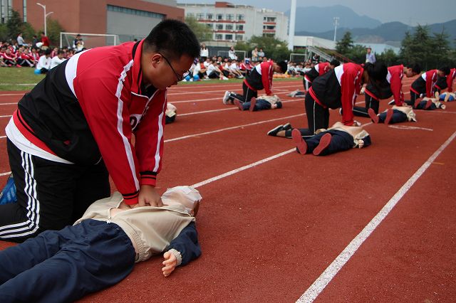 开幕式结束后,在田径场举行了心肺复苏项目的比赛和班级方阵慢跑比赛,由此吹响了本次运动会集体项目比赛的号角。