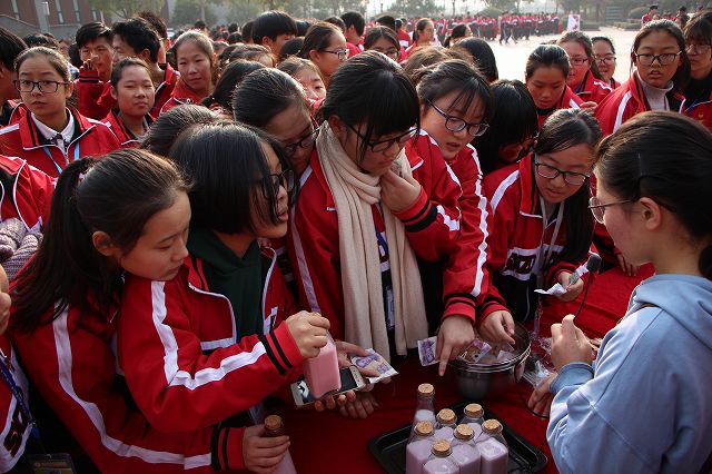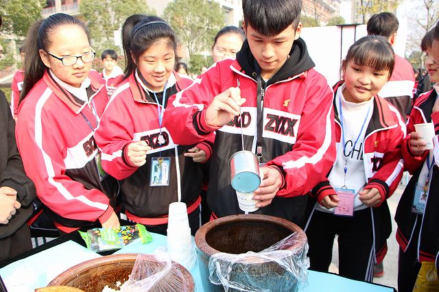 和诚广场上共设置了20个展位,有“中专制造”机械作品展位,有“筑造未来”建筑作品展,有“投资人生”财会作品,也有“秀麓药韵”药剂作品展位等等,展示项目众多,专业实现全覆盖。这里既有同学们各科的优秀作业,也有经过同学们奇思妙想的创意作品,还有同学们巧手制作的各种产品、工艺品等用来销售的展销商品。活动开始后,现场人声鼎沸,热闹非凡。各个展位前都是人潮涌动,有些展位前甚至还排起了长队。只见在“网罗天下”物联作品展位前,同学们就被从来没见过的现场制作的激光雕刻板吸引住了,奇妙而灵巧的激光雕刻机在小木板上雕刻出了精美的图案,引得同学们纷纷掏钱购买。在“反应奇迹”化工作品展位前,手工皂制作展台同样被围得水泄不通,在生物化工系同学的巧手制作下,一颗颗五颜六色,形态各异的手工皂新鲜出炉了。“同学,我要两块手工皂。”“我要订三块。”“我要一块。”刚刚出炉的手工皂不一会儿功夫就被一抢而光,后面的同学只能等待下一批的出炉了。人气同样爆棚的还有“英人而异”创意作品展位,这里的商品很特殊,同学们都在抢购绍兴中专学生的第一张英语歌曲专辑,这张专辑是由15级英语歌曲比赛获奖的同学和16级新生代同学原生态录制,是一张限量版的专辑,对于如此珍贵一张作品,同学们自然是纷纷解囊买来收藏。展示现场的每个展位都带给了大家不同的惊喜和收获,木制勺子、创意陶艺、彩泥作品、铝制酒杯、多功能电子小产品、强力小榔头等等这些在选择性课程中由学生作品升级而来的展销商品都受到了大家的热捧,有些被一抢而空,有些还收到了后续订单,短短两个小时集中展示让大家意犹未尽,活动结束时,有些同学还在为买不到某些心仪的商品而感到遗憾。
