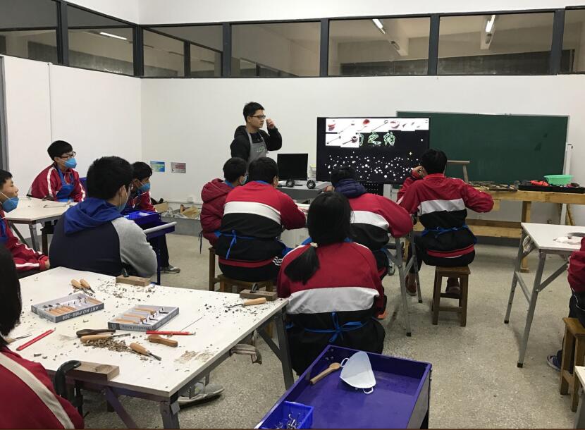 谢峰、蔡菊琴老师开设的《勺之约》木工工艺技术课上课现场