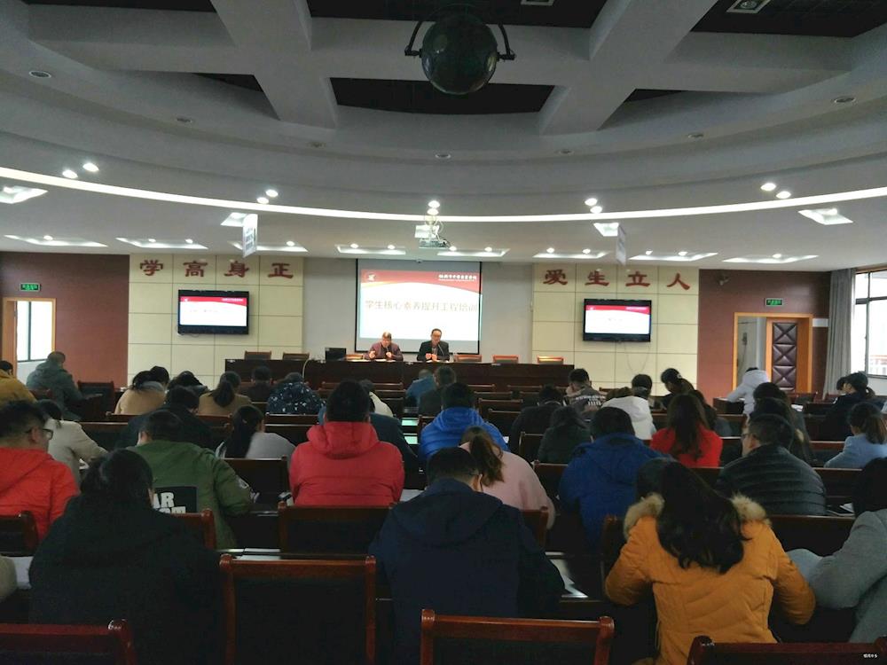 12月4日下午,绍兴中专的全体班主任在崇德楼401会议室召开了一次关于《浙江省中职学生核心素养培育工程》文件解读的培训会议。会议由学生处处长屠小夫老师主持,德育分管校长李金光副校长主讲。本次会议旨在让全校班主任更深层次地理解中职学生核心素养培育工程,将其内化于心,外化于行,熟练运用于日常班级管理,将中职学生核心素养培育的中心思想落地生根,使得“品德优良、人文扎实、技能精湛、身心健康”核心素养内涵能够真正培植进学生的内心,使学生受益终身。