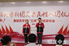 舞动青春旋律,展现青年风采。五四青年节当天,学校举行庄严而肃穆的2018年新团员入团仪式。这场仪式是新团员人生中新的起点,将对同学们今后的学习、工作、生活产生重大而深远的影响。当天下午,我校十名新团员前往稽山中学参加绍兴市2018年新团员示范性入团仪式暨团员学生“五亮”行动发布会。