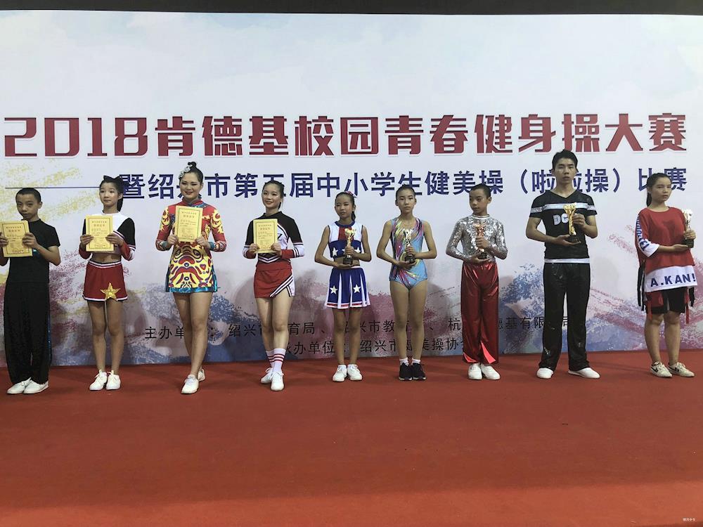 7月4日, 2018肯德基校园青春健身操大赛暨绍兴市第五届中小学生健美操(啦啦操)比赛在绍兴镜湖奥体中心举行,绍兴中专健美操队在基础落后、技术困难的前提下,通过一个学期的认真训练,展示出中专自信,荣获本次比赛两个项目一等奖(第2名)。