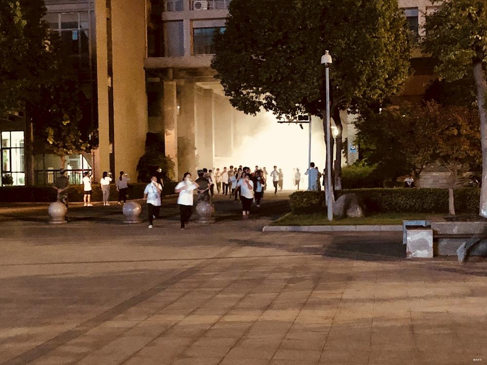 晚上七点半,指挥长宣布演练开始,学生回各自寝室准备,随着危险信号的发出,同学们都用湿毛巾捂住口鼻,弯腰前行,以最快的速度有序地撤离到和诚广场集合,用时2分38秒,并清点人数,确认是否有人员缺失。
