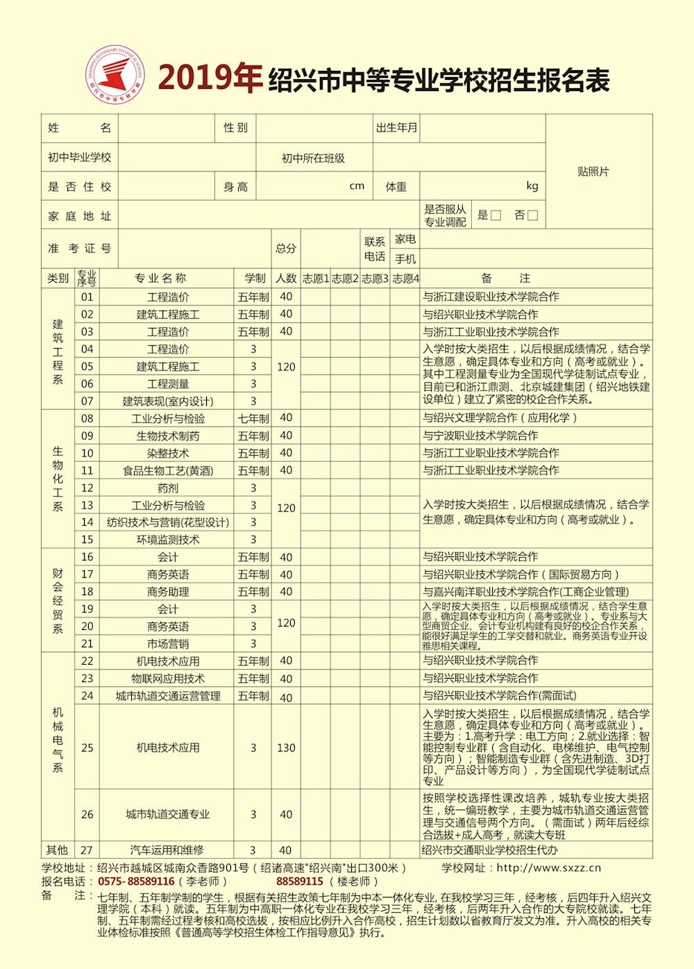 绍兴中专2019招生简章