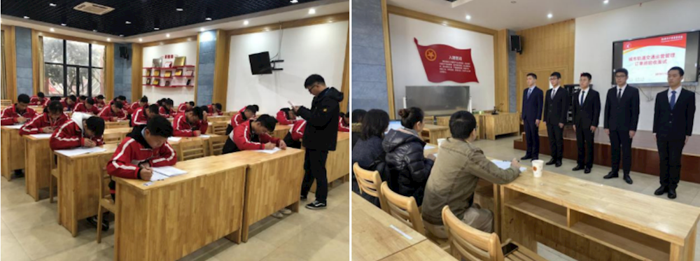 二、校企合作交出新答卷。我们携手绍兴轨道交通集团,探讨轨道交通人才培养途径,深化产教融合交流。绍兴轨道集团对我校15级城轨委培班学生进行阶段性业务能力考查和面试考核,学生们认真准备,亮起胆剑精神,尽显中专城轨学子风采。