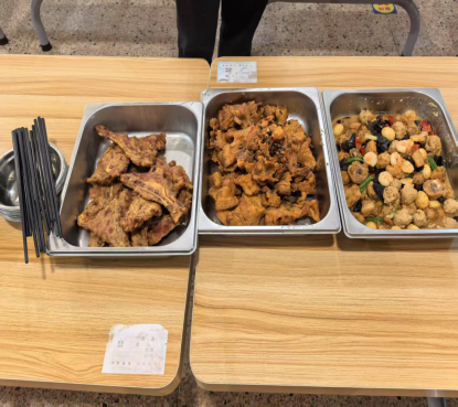 活动当天,崇禾、崇俭食堂共推出7道创新菜品,崇禾食堂推出“椒盐扇子骨”“炒鸡炖肉丸”“酥脆五花肉”等菜品,几道菜口感丰富,肉丸浸满汤汁的鲜香;崇俭食堂则推出“韭黄虾仁炒蛋”“红烧青占鱼”“梅干菜扣肉”,兼顾营养均衡及学生口味偏好。