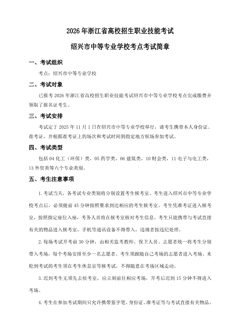 2026年浙江省高校招生职业技能考试考试简章(绍兴中专考点)
